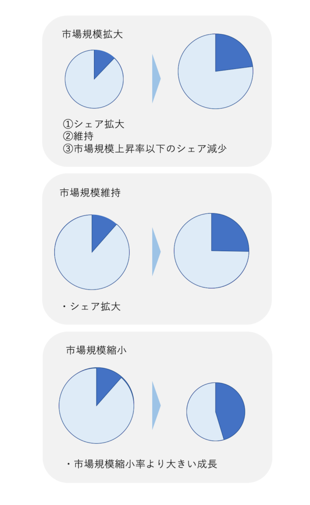 自社シェア:拡大 or 維持 or 縮小
